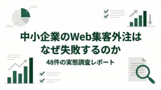 アンケート・調査レポート 中小企業のWeb集客外注はなぜ失敗するのか?48件の実態調査で見えた共通点 中小企業のWeb集客外注は、なぜ成果につながらないのか。48件の実態調査から、外注が失敗と判断される構造と、支援現場で見えてきた共通点を整理しました。 2026.01.13 アンケート・調査レポート